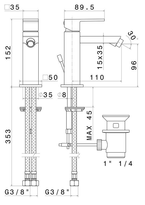 Смеситель однорычажный для биде с донным клапаном 1"1/4. Соединение 3/8"