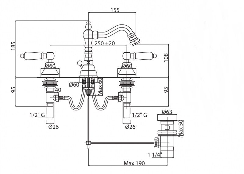 Смеситель для биде на три отверстия, хром Cezares FIRST-BBS2-01-Bi купить
