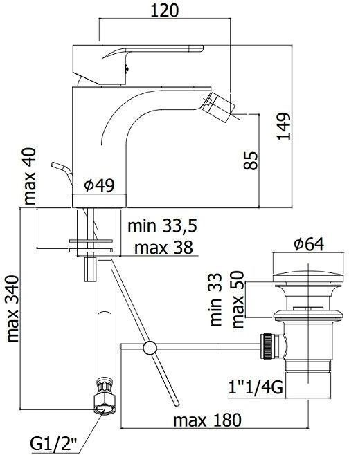 Смеситель для биде с авт.д/к 1 1/4", ХромСмеситель для биде Paffoni Green GR135CR.ВНИМАНИЕ! В монтажной схеме указан европейский стандарт подводки 3/8, мы предлагаем комплект, адаптированный к российским условиям, со стандартом подводки 1/2.Комплектация: