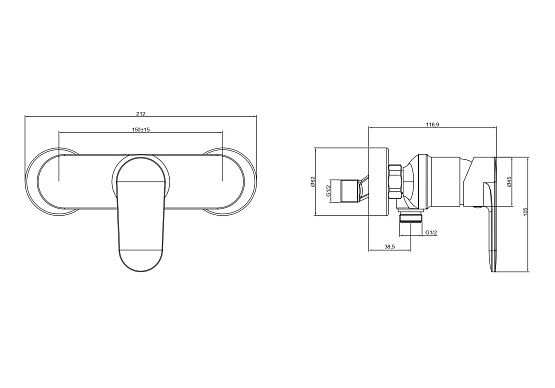• Однорычажная система регулировки силы струи и температуры воды