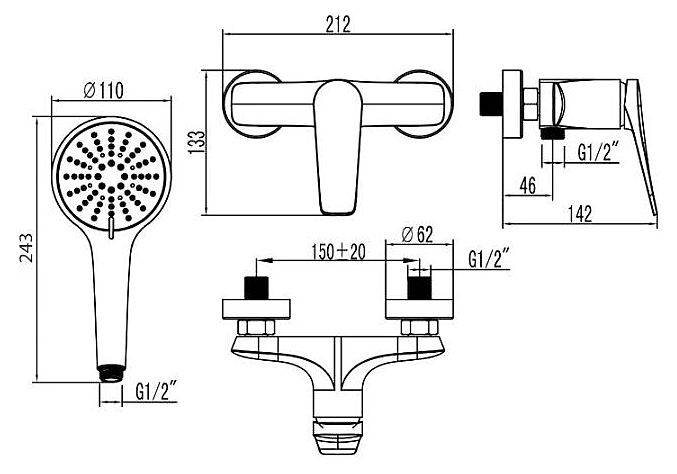 Смеситель для душа Lemark Bronx LM3703BL чёрный купить
