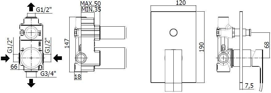 Комплектация:Смеситель на 2 выхода с накладкой из нержавеющей стали
