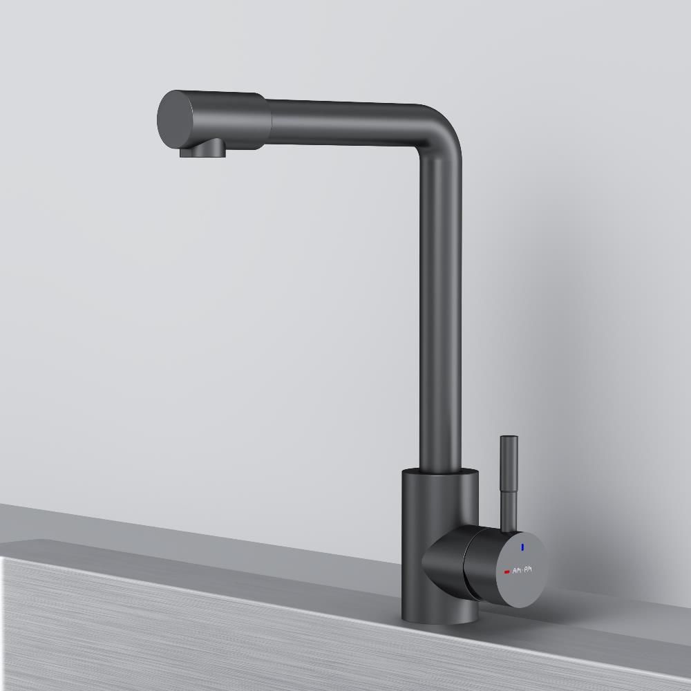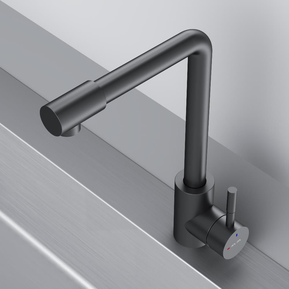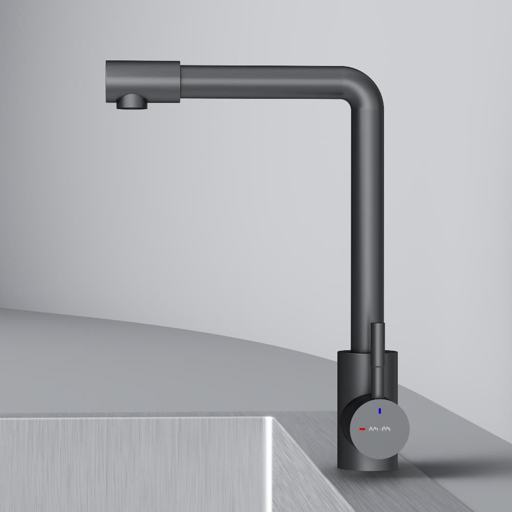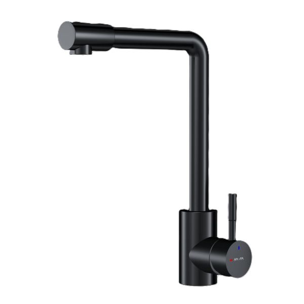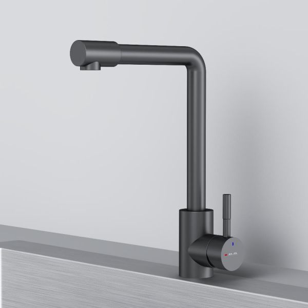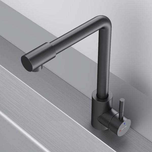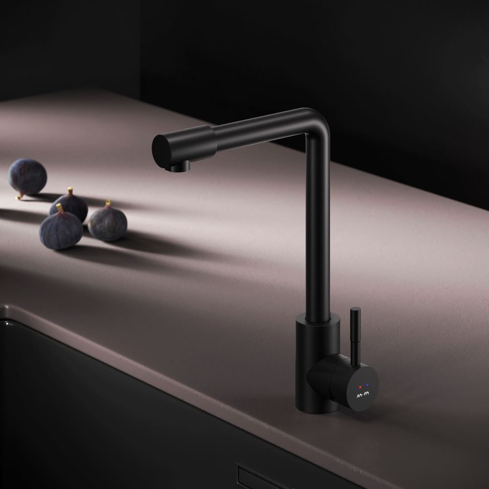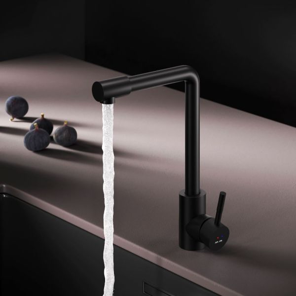 L-образная архитектура смесителя идеально подойдет для использования с мойкой любого размера и значительно упростит такие задачи, как наполнение больших емкостей. Черный матовый цвет сделает этот смеситель главным акцентом в любом интерьере.