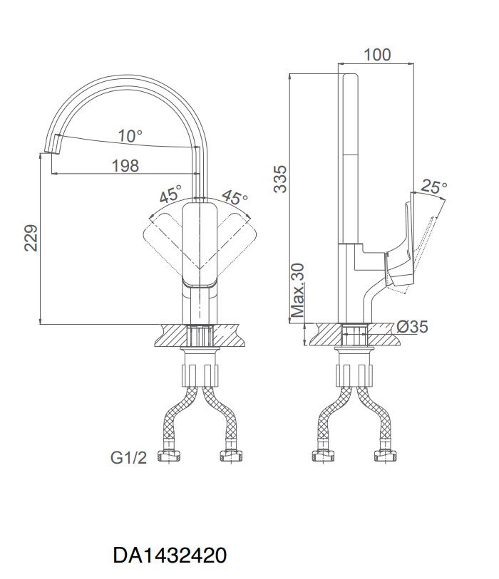 - Высота смесителя:33.5