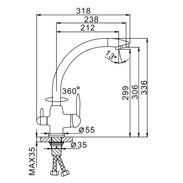 - Высота смесителя:33.6
