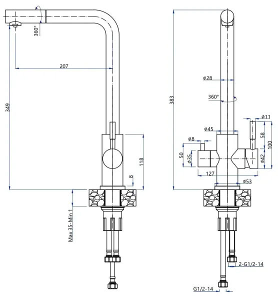 - Высота смесителя:34.9