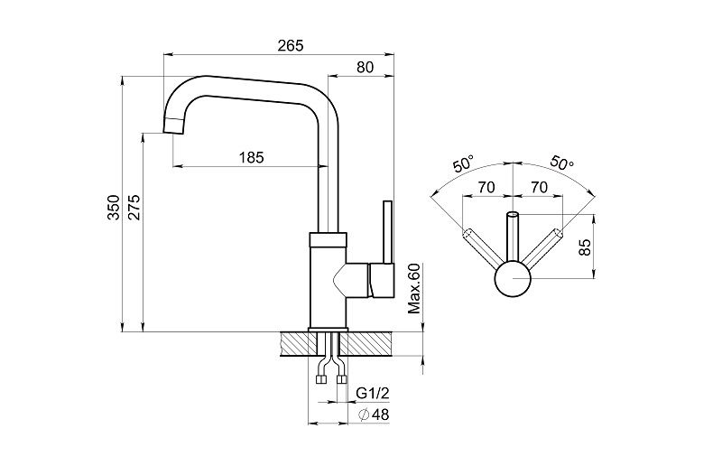 - Гибкий излив:нет