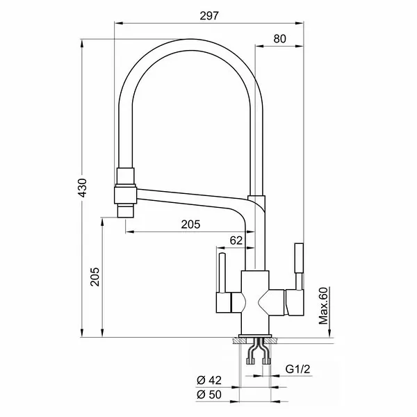 - Выдвижной излив:нет