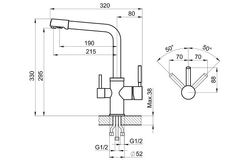 Гибкая подводка, комплект креплений, переходник для подключения фильтра с питьевой водой