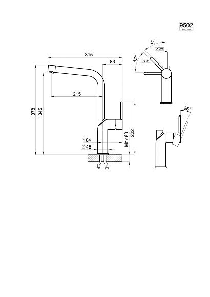 Смеситель для кухни Granula 9502, НЕРЖ Нерж