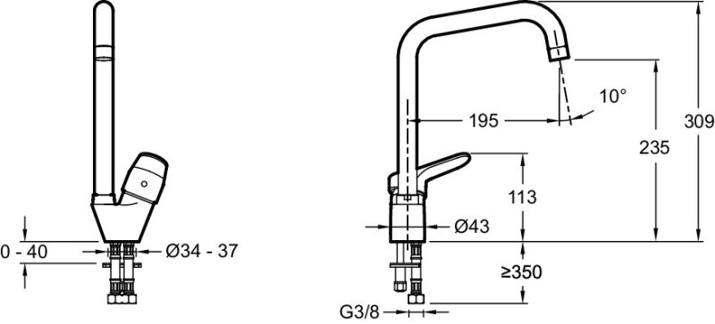 Смеситель для кухни Jacob Delafon BRIVE E75770-CP.Высота под аэратором