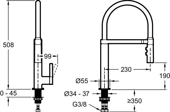 - Выдвижной излив:нет