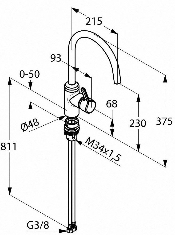 - Высота смесителя:37.5