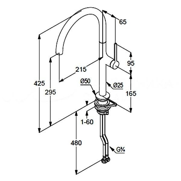 - Длина излива: 21.5 см