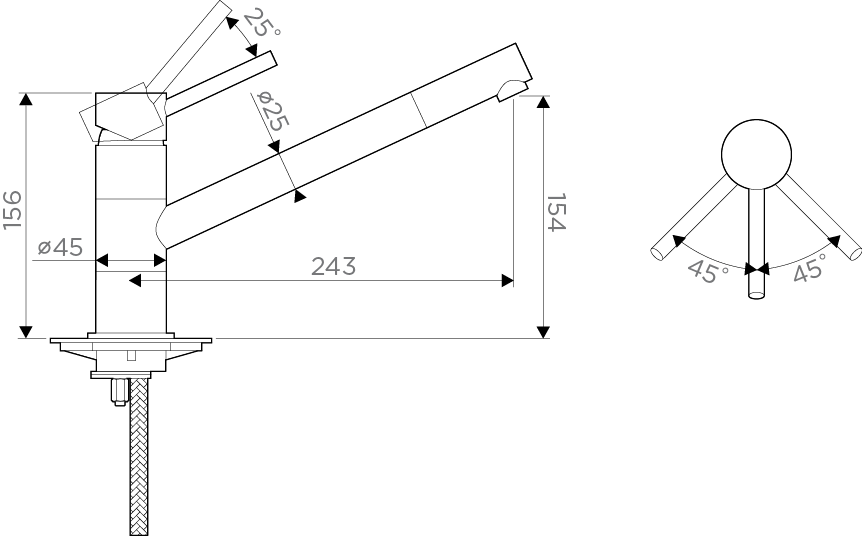 - Длина излива, см:24.3