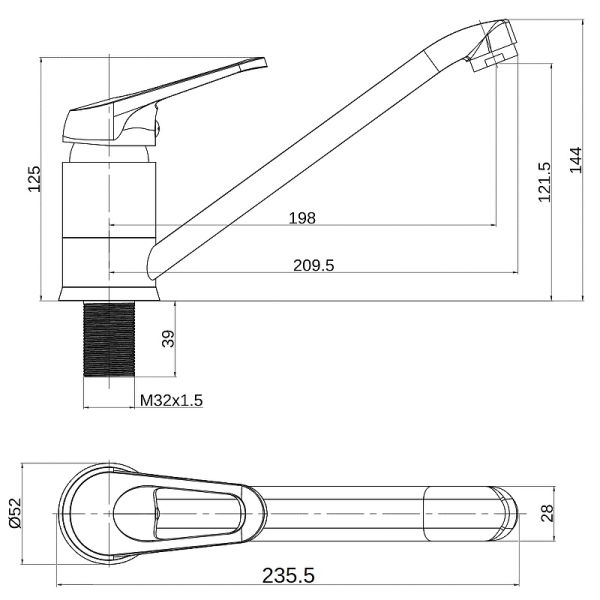 - Высота смесителя:14.4