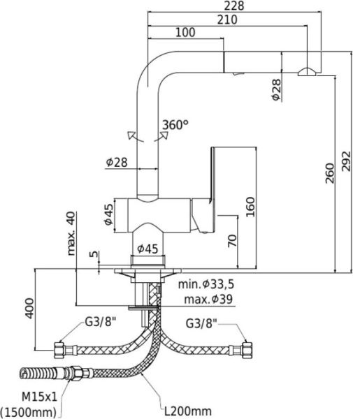 - Высота смесителя:29.2