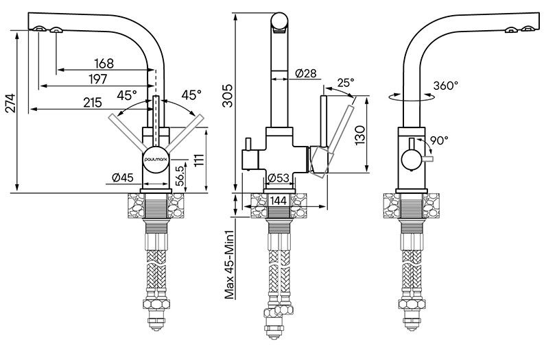 - Высота смесителя:30.5