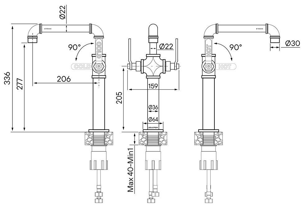 - Высота смесителя:33.6