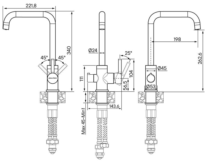 Конструктивная технология Trinkwasser® предусматривает поступление фильтрованной воды, которая не смешивается с водопроводной. Фильтрованная вода подается через отдельные трубку и аэратор.