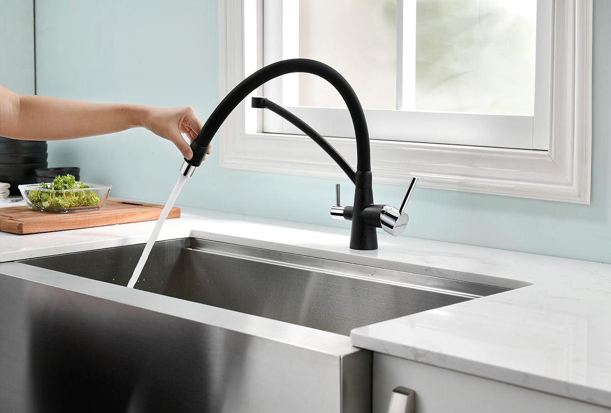 Смеситель под фильтр с гибким изливом, артикул Si213111-308Смеситель для кухни однорычажный, с возможностью подключения фильтра питьевой воды, эластичный излив, керамический картридж 35 мм.Материал корпуса - латунь высокого качества. Многослойное, стойкое к истиранию покрытие. Долговечный керамический картридж диаметром 35 мм. Эластичный излив. Съемный пластиковый аэратор, который обеспечивает мягкую струю, ровный и экономичный поток воды. Простой монтаж, стандартное подключение.