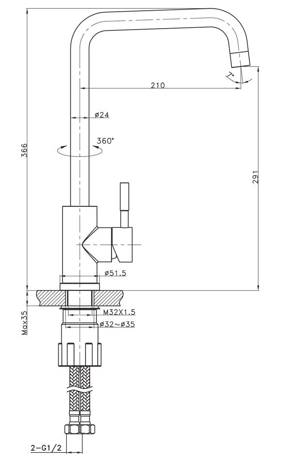 - Высота смесителя:36.6