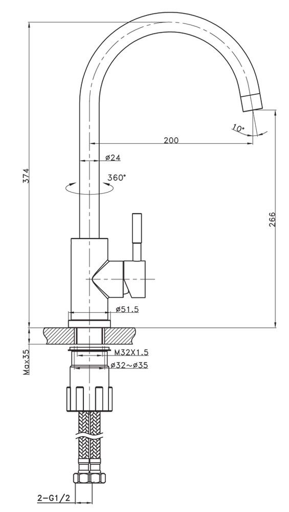 Смеситель для кухни Raiber Graceful RPB-012 чёрный матовый купить