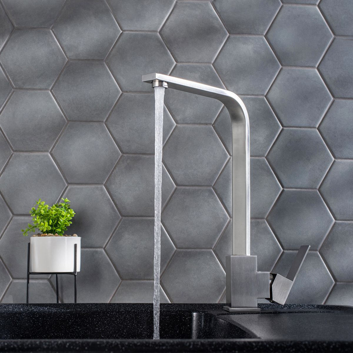 Современнный смеситель для кухни с высоким поворотным изливом — это сочетание стильных линий и надежной функциональности.