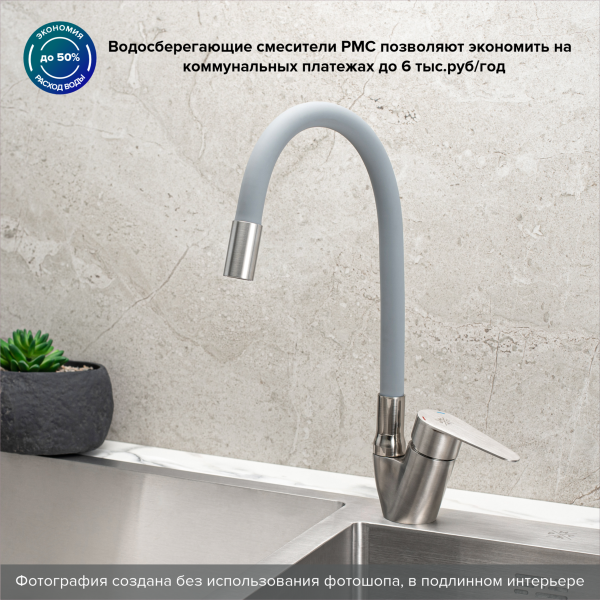 Смеситель для кухни РМС SUS126GY-016F нержавеющая сталь купить
