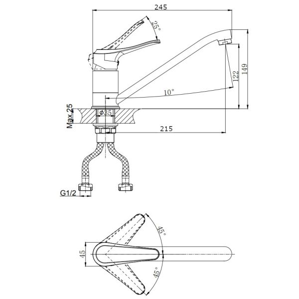 - Высота смесителя:14.9