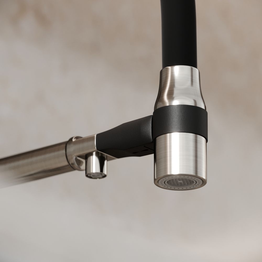 Смеситель для кухни SANCOS Garda с гибким изливом и возможностью подключения фильтра для воды, цвет брашированный никель, арт. SC4009BNФункция "Холодный старт" - при включении смесителя активируется холодной поток, для экономии горячей водыАэратор, гибкая подводка, ключ и крепления для монтажа