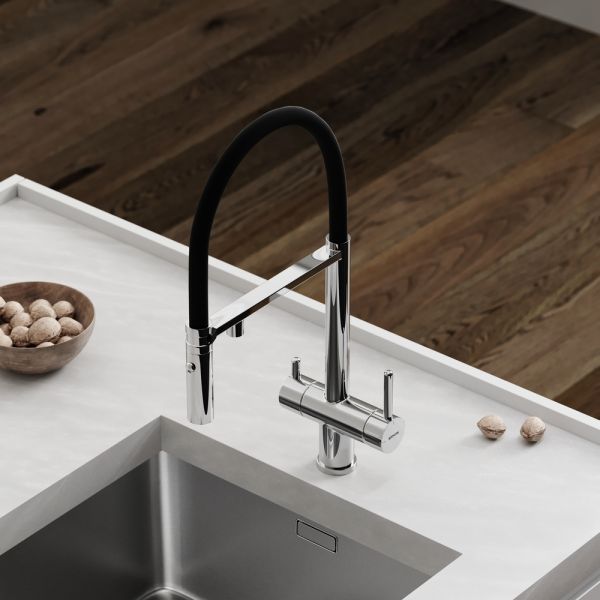 Смеситель для кухни SANCOS Imola с гибким изливом и возможностью подключения фильтра для воды, цвет хром, арт. SC4010CHФункция "Холодный старт" - при включении смесителя активируется холодной поток, для экономии горячей водыАэратор, гибкая подводка, ключ и крепления для монтажа