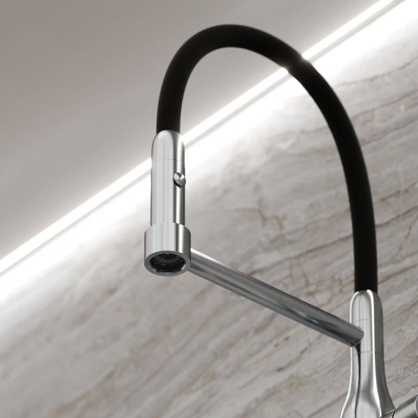 Смеситель для кухни SANCOS Pride с гибким изливом , цвет нержавеющая сталь, арт. SC4011BNGС возможностью регулировки температуры водыАэратор, гибкая подводка, ключ и крепления для монтажа, ключ для обслуживания аэратора