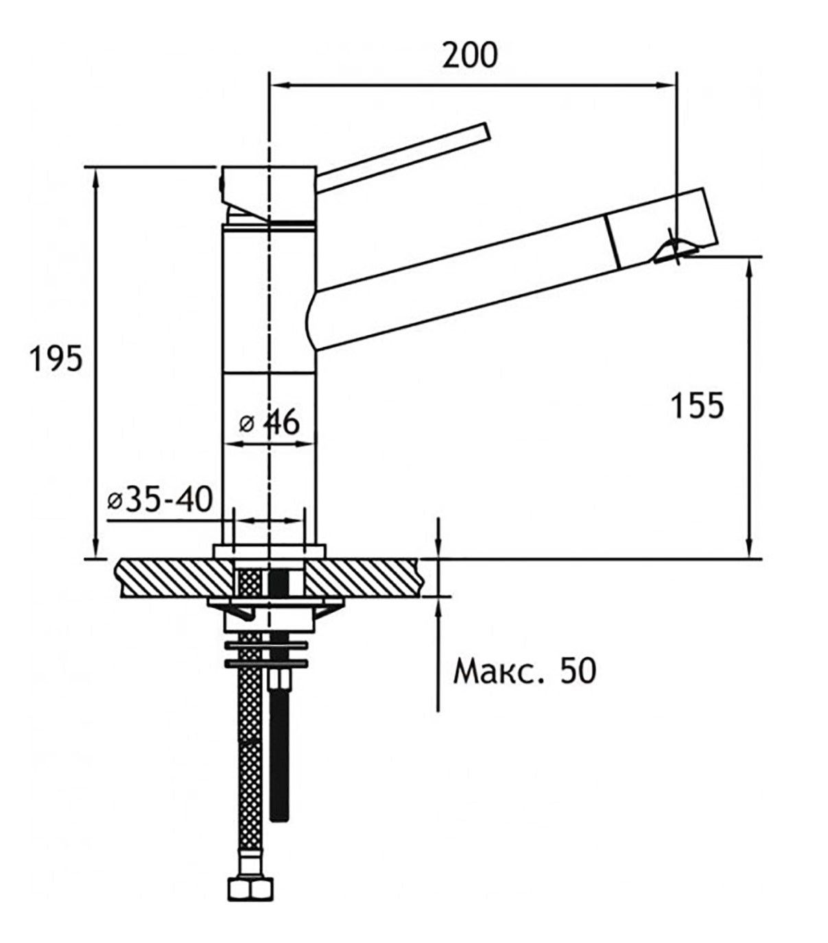 - Высота смесителя:19.5