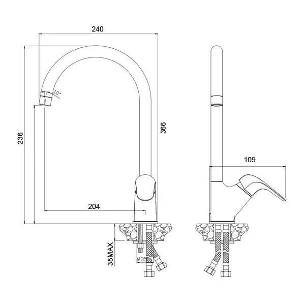 Смеситель для кухонной мойки AZARIO EVORA AZ-WKE56266C керамический картридж купить