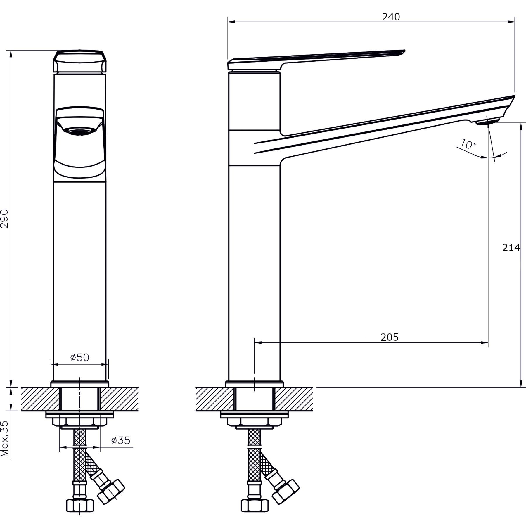 Смеситель для кухни RUSH арт. BE5535-22 с поворотным изливом из коллекции Bering изготовлен из высококачественной латуни и имеет рычажное управление.В смеситель установлен картридж D-35 с керамическими пластинами. Высота смесителя 290 мм. Излив поворотный, 205 мм. Высота излива до аэратора 214 мм. Аэратор изготовлен из пластика с нержавеющим корпусом, угол наклона аэратора- 10 гр. В комплекте гибкая подводка с латунными гайками 45 см - 2шт, универсальная присоединительная группа для установки на горизонтальную поверхность, фум-лента, индивидуальный пакет, паспорт, гарантийный талон.