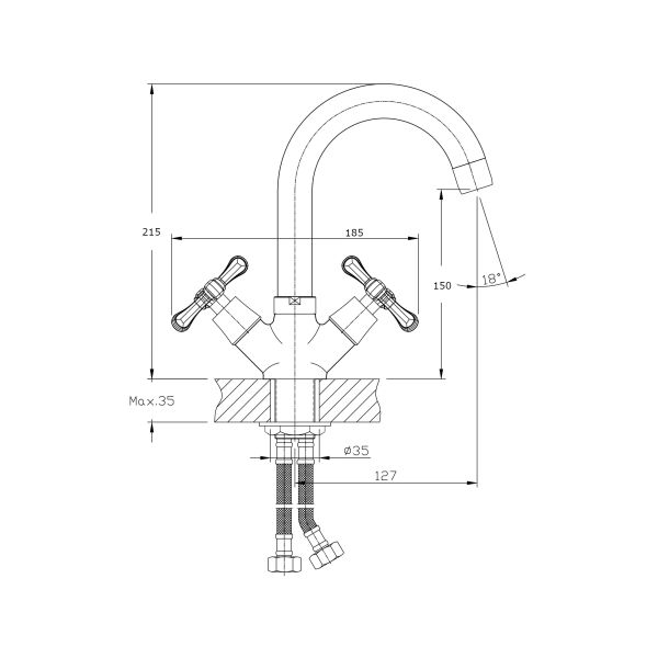 - Высота смесителя:21.5