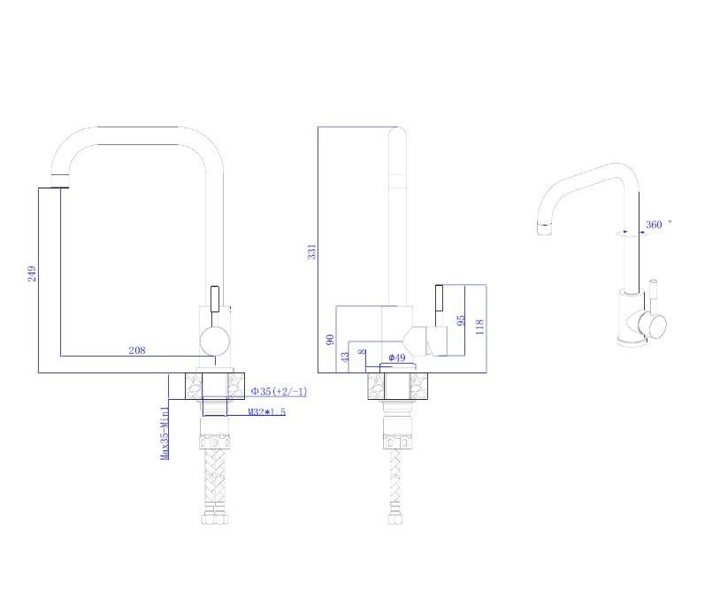 Смеситель для кухни с высоким поворотным изливом RUSH Melos арт. SUS1101-23 с металлической ручкой изготовлен из нержавеющей стали SUS304 и имеет рычажное управление. В смеситель установлен картридж D-35 с керамическими пластинами. Высота смесителя 331мм. Излив поворотный 208мм. Высота излива до аэратора 248мм. Аэратор изготовлен из пластика с нержавеющим корпусом, угол наклона аэратора- 7 гр. В комплекте гибкая подводка с гайками 40 см - 2шт, универсальная присоединительная группа, фум-лента, индивидуальный пакет, паспорт, гарантийный талон.