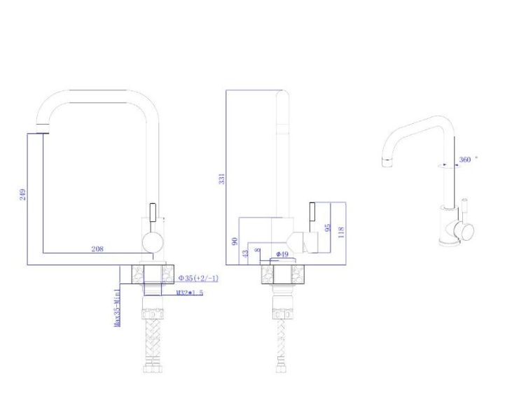 • Высота смесителя: