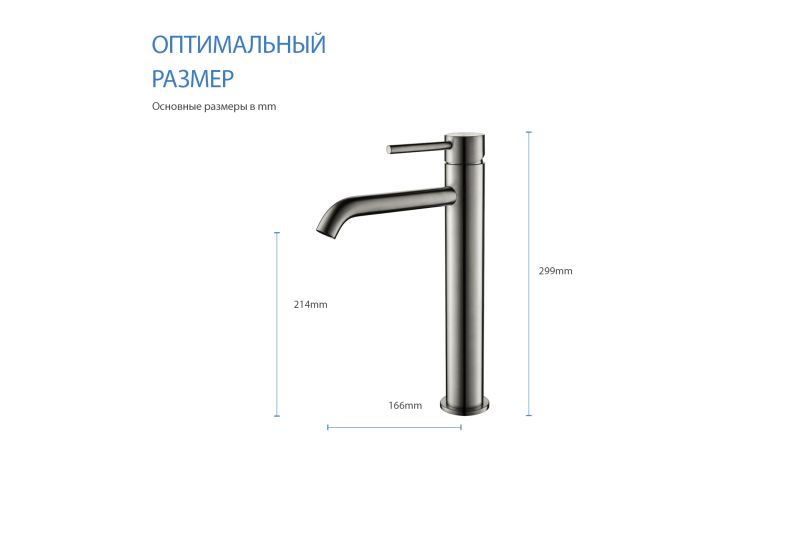 • Оснащен высоким изливом, удобен для мытья крупных предметов
