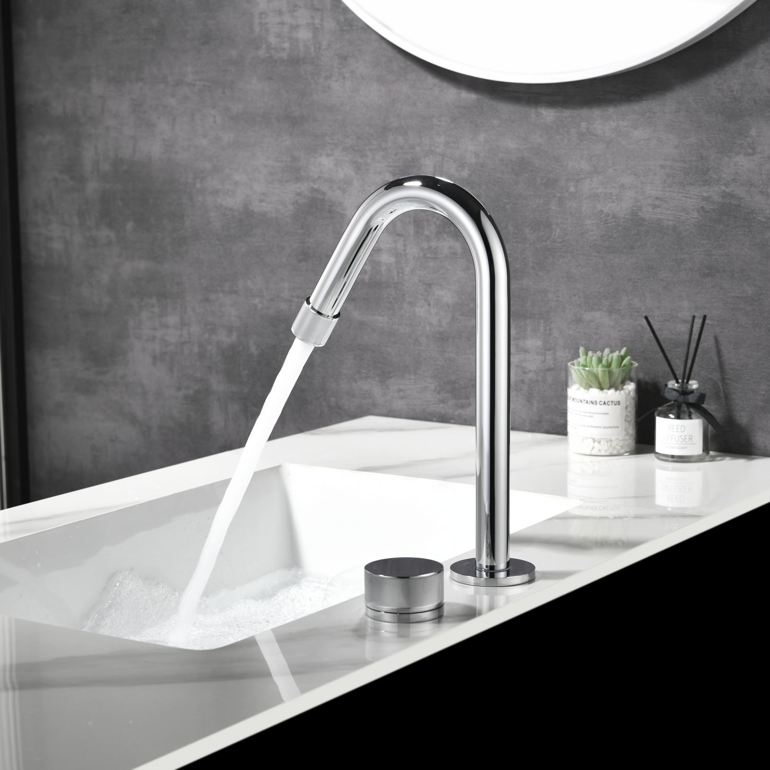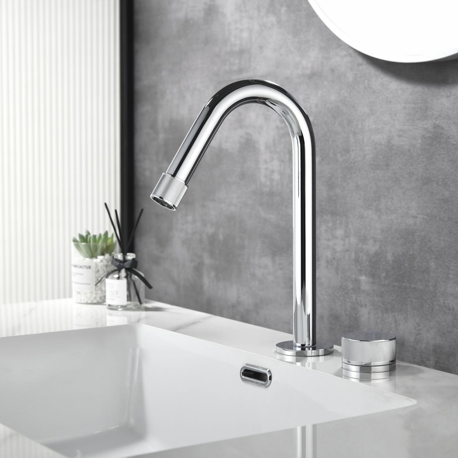 Двухпозиционный смеситель для раковины датского производителя Black&White в цвете глянцевый хром. Изделие выполнено из сантехнической латуни – безопасного для здоровья сплава не подверженного коррозии. Настройка температуры выведена на ручку цилиндрической формы, в которую установлен керамический картридж, монтаж осуществляется сбоку от излива. Настройка давления воды выведена на сам излив в виде кольца с насечками в зоне аэратора. Продукт выполнен в минималистичном стиле и гармонично впишется в Эко интерьеры ванных комнат,а высокий излив удобен в практическом использовании.