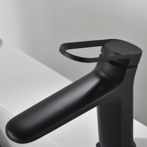 Смеситель для раковины датского производителя Black&White черного матового цвета. Материал корпуса – сантехническая латунь, безопасный для здоровья и ресурсный сплав, с порошковой окраской. Управление потоками воды и настройка температуры осуществляется с помощью керамического картриджа.Важным функциональным и эстетическим решением стоит отметить возвышение излива на 10 градусов и ручки управления на 25 градусов относительно плоскости– это создает стремительные линии, а также минимизирует количество подтеков на корпусе когда Вы моете руки .