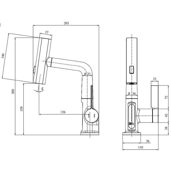 - Длина излива, см:15.6
