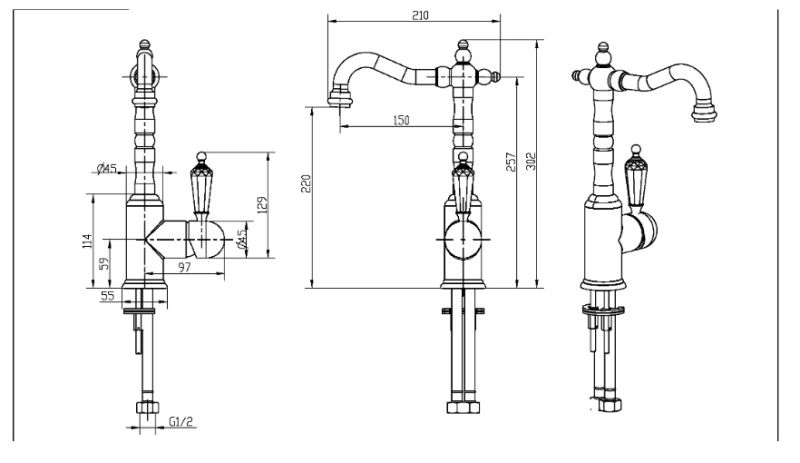 Смеситель Boheme Imperiale Ripresa 322 для раковины превосходно подойдет в вашу ванную комнату и дополнит интерьер. Смеситель Boheme Imperiale Ripresa несомненно подойдет почти на любую раковину. Однорычажные модели смесителей – это более современный вариант регулировки воды, легкий в управлении и эстетически стильный в дизайне.Латунь, кристаллы Swarovski использованная в конструкции смесителя Boheme Imperiale Ripresa 322 соответствует всем необходимым стандартам качества и является абсолютно безвредной для здоровья. Излив смесителя Boheme 322 длиной 15 см и высотой 22 см обеспечит идеальное и комфортное использовании при принятии водных процедур. Конструкция модели Boheme Imperiale Presente позволяет роскошно установить смеситель на столешницу, на раковину. Смеситель для раковины Boheme 322 выполнен в стиле ретро, что идеально прослеживается в его форме. Родина бренда Boheme – Италия, все смесители произведены с высокой точностью и грамотностью технологического процесса. Смеситель Boheme Imperiale Ripresa 322 для раковины это незаменимый элемент для создания уюта и комфорта в ванной.