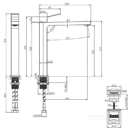 - Длина излива, см:31.3