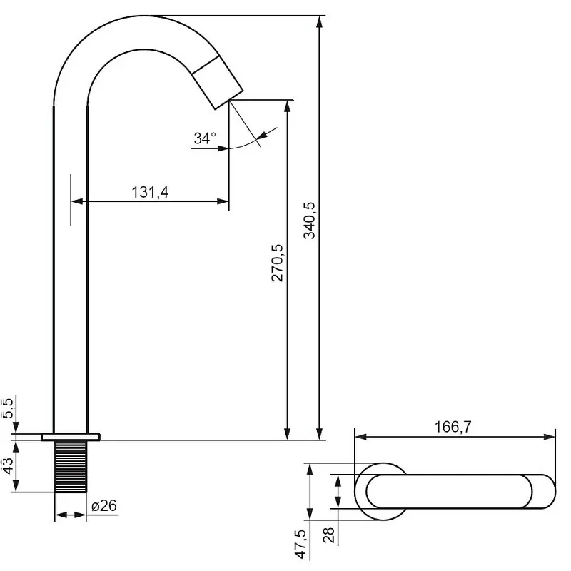 - Длина излива, см:13
