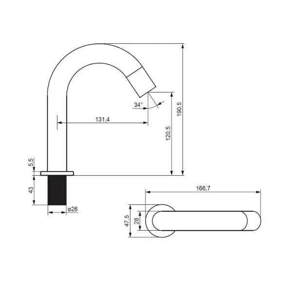 - Длина излива, см:13
