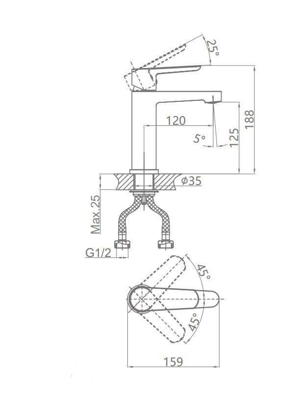 - Высота смесителя:18.8