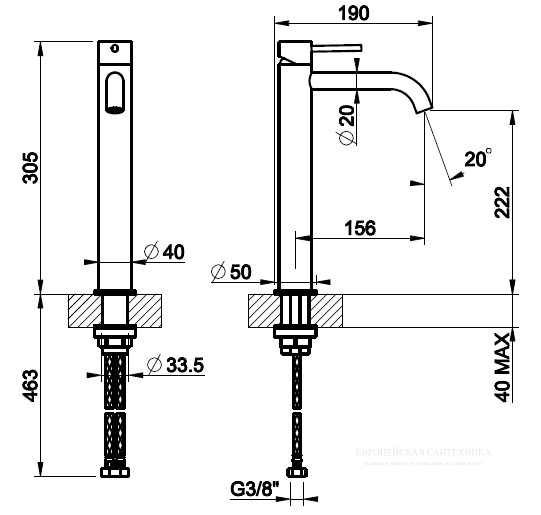 - Высота смесителя:30.5