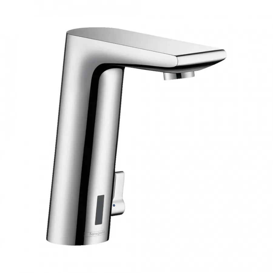 ComfortZone 150 выступ 128 мм расход воды при 3 барах: 5 л/мин аэратор с защитой от вандализма регулируемое ограничение температуры температура регулируется посредством бокового смешивающего рычага клапан обратного тока воды подходит для проточных водонагревателей инфракрасный электронный датчик, срабатывающий на приближение автоматическая адаптация инфракрасного датчика к окружающим условиям регулируемое оптическое расстояние для инфракрасного сенсора (2 положения) индикатор состояния батареи питание от батареи 6 V (батарея включена в комплект поставки) ручное прекращение подачи воды для чистки раковины функция может быть ограничена при использовании для раковин с возвышением или с очень широким краем раковины (> 75 мм) функциональное ограничение из-за большого расстояния вид соединения: соединительные шланги G ? грязеулавливающие фильтры в соединительных шлангах